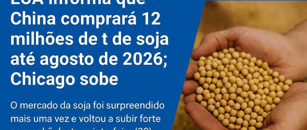 A quinta-feira (30) começou movimentada no mercado internacional da soja. A Bolsa de Chicago registrou recuperação significativa dos preços após o anúncio de que a China retomará compras expressivas do grão dos Estados Unidos, com compromissos que se estendem até 2026 — e previsões que seguem até 2029.
