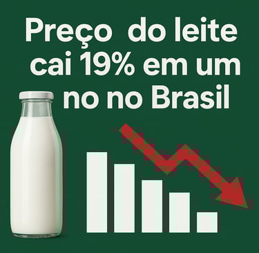 Preço do leite registra queda de 19% em 12 meses, segundo Cepea/Esalq/USP. Excesso de oferta pressiona margens e deve manter mercado em baixa até o fim do ano.
